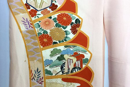 お着物にはよくあることなのですが、長年の劣化や、保管により箔が剥がれて下地が見えています。 そのようなお着物も 福岡着物のお手入れ専門店 田中屋にお任せください。綺麗に箔直し致します。